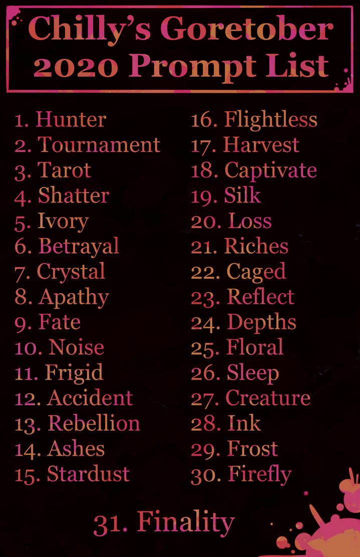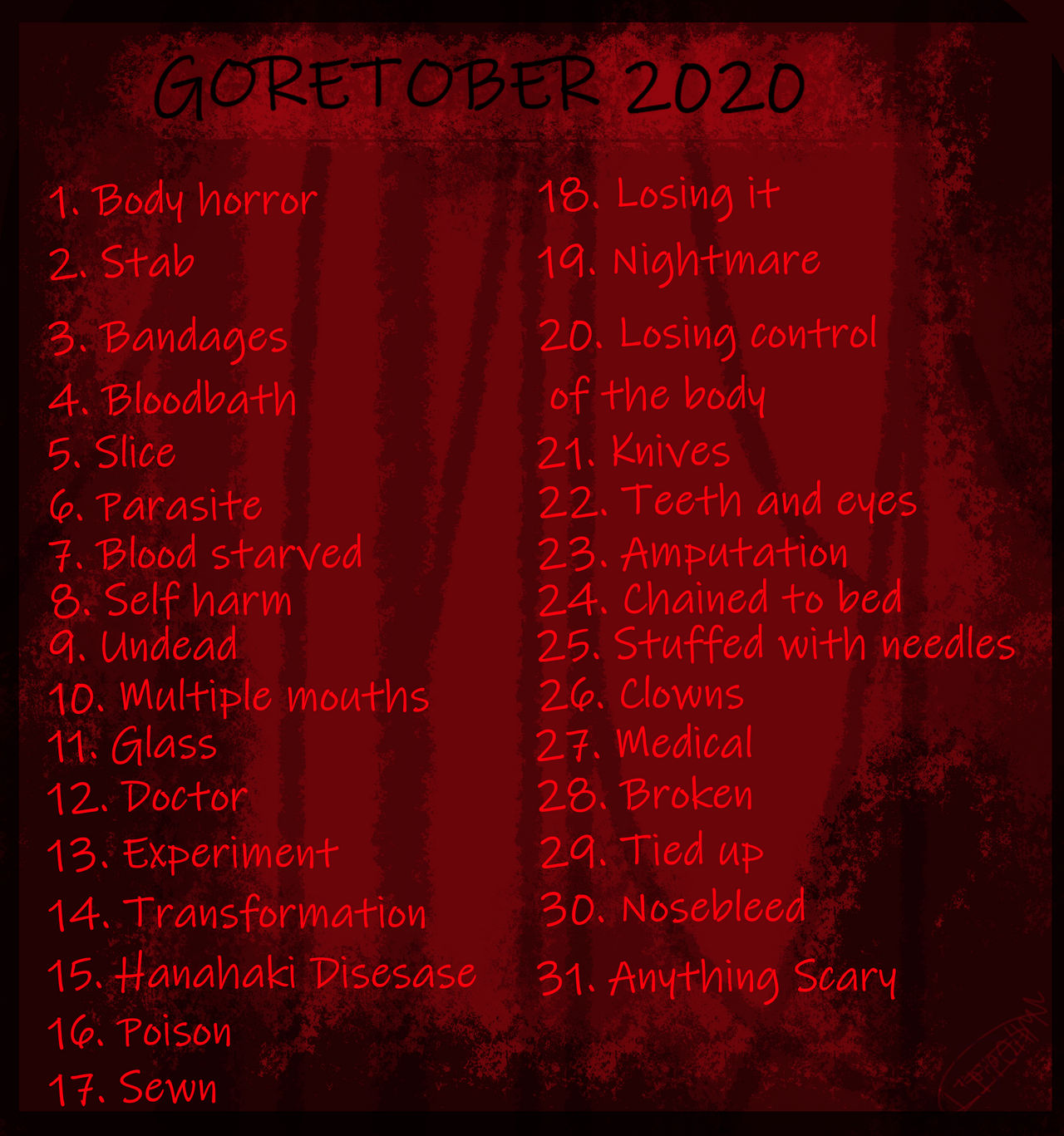 Goretober 2020 Prompt List by ChillyStarr on DeviantArt